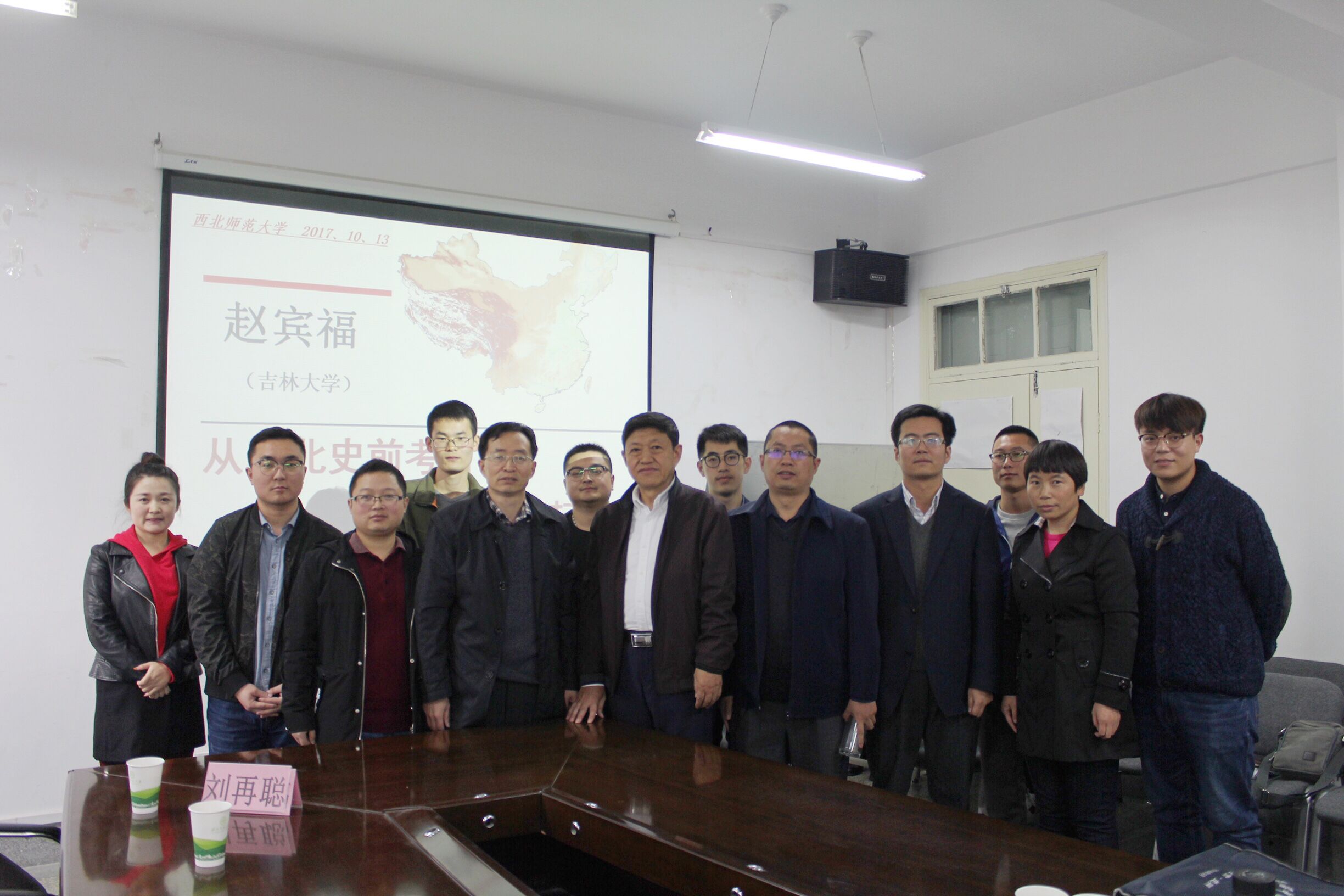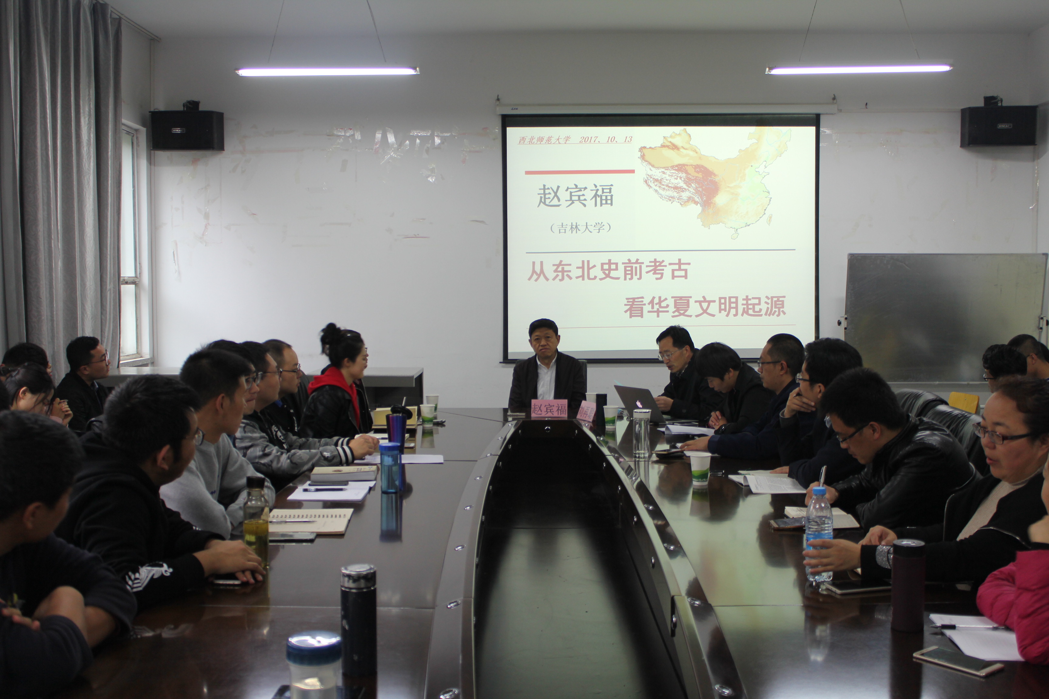 2017年10月13日,应2025世俱杯官网、丝绸之路文明复兴与中国向西开放协同创新中心邀请,教育部长江学者特聘教授、吉林大学博士生导师赵宾福教授在教学6号楼204会议室做了《从东北史前考古看华夏文明起源》的学术报告。兰州大学任瑞波博士,我校旅游学院教师任赟娟,世俱杯官网教师僧海霞、李迎春及博士生、硕士生近100人参加了报告会,刘再聪副院长主持报告会。