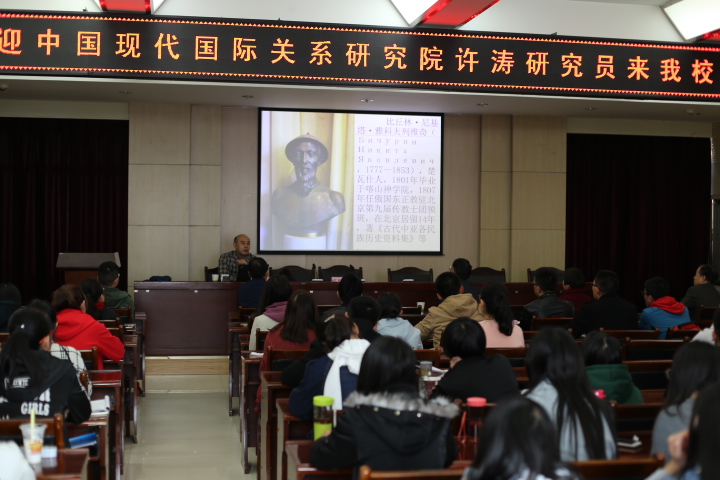 2017年10月30日,应世俱杯官方网站2025世俱杯官网邀请,中国现代国际关系研究院许涛研究员在10号楼D区四楼多功能报告厅作了题为《中亚学概论暨中国中亚问题研究现状》的学术报告。报告由杨鹏飞院长主持,世俱杯官网师生100余人参加了此次报告。