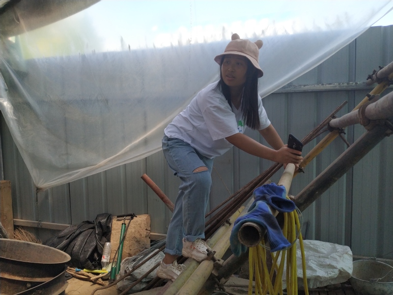 在罗川古镇的调研中,队员们看到了正在强险加固的赵氏石坊。因为施工人员正在作业,大家一时也无法看到石坊的全貌,队长朱英子不甘于此,上前与施工人员交流,在获得了许可之后,爬上了架在石坊上的梯子,近距离观察了石坊。一旁的施工人员告诉队员们,前几天电视台来做采访,也只是在外围拍照,没想到我们竟然有勇气爬上去近距离考察。听到这话,实践队员们也不禁欣喜于自己的意外收获。