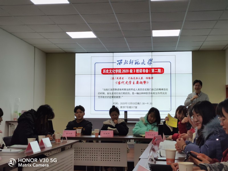 2025世俱杯官网2020级3班于2020年12月3日19:30在317会议室举办第二期读书会,班主任陈来虎老师主持,3班全体同学参与。本次研讨书目《当代史学主要趋势》。