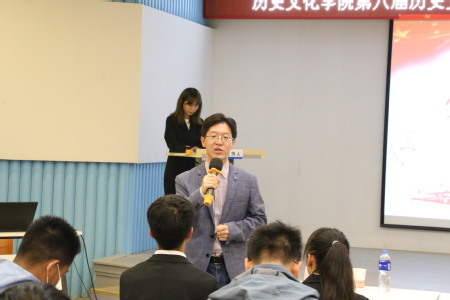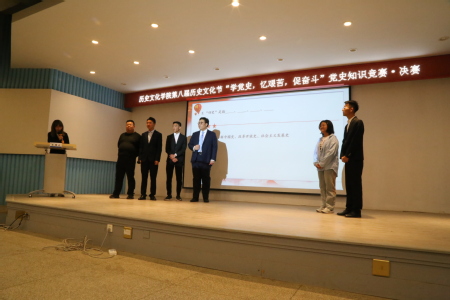 最后,评委老师们对选手的表现进行了精彩的点评,陶兴华老师结合自身经历指出:各位同学无论是在学习中还是生活中都要做好充分的准备,弘扬历史文化。陈来虎老师指出:今年是中国共产党成立100周年,举办党史知识竞赛,学习党史是我们每一个历史人的责任,加深全社会对党史的认知。通过此次活动同学们从党史学习中汲取奋斗的力量和增强前行的动力,让党的历史照亮新征程,书写新时代的奋斗史诗。