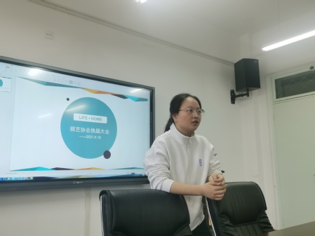 在本次会议上,车昱滢首先对2020-2021学年棋艺协会的各项工作进行了总结,认为本学年棋艺协会承办的各类比赛成效显著,工作有不少出彩之处,在校内外反响较好,希望下一届社团负责人可以继续保持。同时,她还提出了社团发展的诸多不足之处,如棋类知识普及、教学活动开展不好等问题。对此,车昱滢提出了改进意见并期望今后能加以改进,把棋艺协会越办越好。