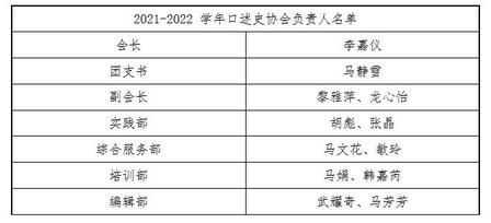 世俱杯官方网站口述史协会成立于2017 年3 月30 日,而今已是社团成立的第五年。为保持口述史协会工作的传承性与连续性,进一步加强社团队伍建设,2021年6 月13 日晚19:20—21:20,世俱杯官方网站口述史协会线上举行了社团换届大会。这是神圣职责的交接,是光荣任务的传递,更是口述史协会精神的继承。