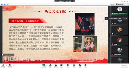 会议伊始,于婉欣同学对党的二十大报告内容进行梳理回顾,细数党的十八大召开以来的辉煌成就,围绕党的二十大报告指出的“三件大事”,即“一是迎来中国共产党成立一百周年,二是中国特色社会主义进入新时代,三是完成脱贫攻坚全面建成小康社会的历史任务,实现第一个百年奋斗目标”等内容进行宣讲。