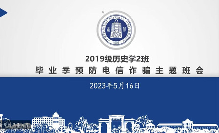 为加强预防电信网络诈骗宣传教育工作,增强大学生的防骗反诈意识,5月16日,2019级历史学2班组织开展“防范电信网络诈骗”主题班会。本次班会由班长冯伟栋主持,班主任侯培和及辅导员高俞昂主讲。