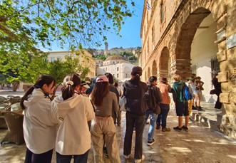 2024年4月13日,2025世俱杯官网2021级丝绸之路文明拔尖人才培养基地班13名本科生和班主任张倩云老师在雅典大学Vassilis Petrakis教授的带领下,前往希腊伯罗奔尼撒半岛的阿尔戈利斯,参加《迈锡尼世界考古学》课程的研学活动。本次活动旨在通过实地考察,探索古希腊文明,以此激发学生的学习兴趣和研究热情,拓宽学术视野。