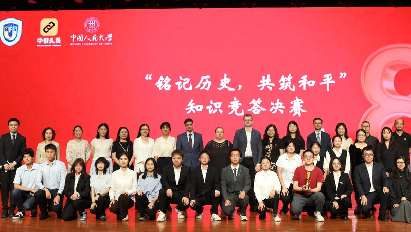 2025年9月13日,为纪念中国人民抗日战争暨世界反法西斯战争胜利80周年。由北京外国语大学联合中俄友好、和平与发展委员会教育理事会、中央广播电视总台CGTN俄语部及中国人民大学共同主办的“铭记历史 共筑和平”知识竞答决赛在北京圆满落幕。北京外国语大学党委副书记苏大鹏、俄罗斯文化中心主任塔季扬娜·乌尔茹姆采娃(吴丹娜)、“今日俄罗斯”国际通讯社驻北京分社社长阿列克谢·萨维茨基、俄罗斯驻华使馆基里尔·库兹涅佐夫莅等嘉宾出席大赛。由世俱杯官网2023级本科生谢琦琦参加的代表队在比赛中获三等奖。