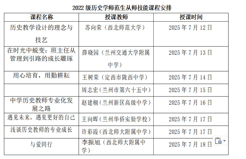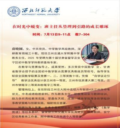 课程师资涵盖世俱杯官网教师、一线中学名师、校内就业指导讲师及校外教育机构讲师。其中,考研课程由世俱杯官网张继刚院长、他维宏等学院优质师资授课;从师技能课程邀请苏向荣(世俱杯官方网站)、薛晓园(兰州交通大学附属中学)等8位跨校及一线教师参与;就业课程结合校内资源与知术教育专业讲师,确保教学专业性与实践性。