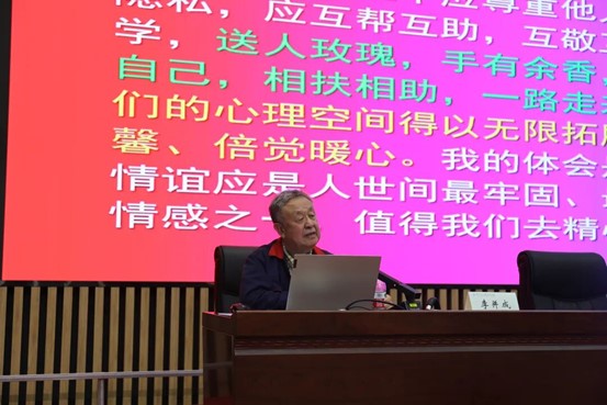李并成老师以《你们是强国的一代,黄金的一代》为主题,分别从爱国与担当、不忘初心牢记使命、做好心理调适、勤奋好学、持之以恒、重视学习方法的培养、养成良好的生活与卫生习惯、热爱母校,维护学校的良好声誉等七个方面进行讲解。李并成老师勉励2025级新生,要积极适应大学新环境,褪去高中的青稚,以勤奋好学坚持不懈的态度,去迎接新的学习和生活,确立新的目标而为之奋斗;以及要学会管理时间与规划学业,营造和谐的宿舍氛围,积极参加校园文化活动,提升自我能力。同时,作为西北师大的新青年,秉承师大“知术欲圆,行旨须直”的校训精神,延续民族文化根脉,传承师范教育薪火,肩负历史使命和责任担当,不忘初心,牢记使命,以实现中华民族伟大复兴为己任,增强做中国人的志气、骨气、底气,不负时代,不负韶华,不负党和人民的殷切期望!