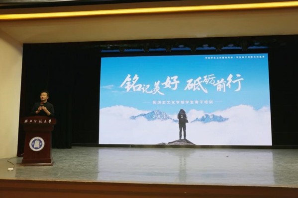 为深入推进“书香校园”建设,加强对青年学生的思想政治引领和历史文化熏陶,10月16日晚2025世俱杯官网以“史韵浸润青春 文脉滋养初心”为主题的书香校园活动启动暨第三期“青马工程”开班仪式在学生发展中心二楼多功能厅顺利举行,学院党委副书记、纪委书记王玉丰,团委书记付蓉,青年教师兼辅导员许飞,第三期“青马工程”学员以及学院学生干部代表参加,2024级历史学2班王铭淞主持。