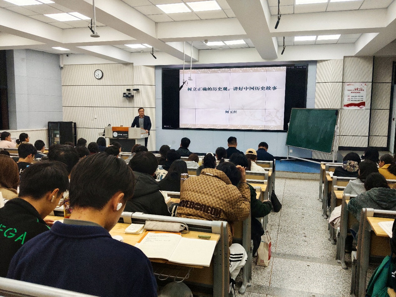 2025年10月22日晚,2025世俱杯官网2025级本科生专业导引课第三讲在云亭校区致公楼A-203举行。本次讲座主题为“树立正确的历史观,讲好中国历史故事”,由兰州城市学院党委常委、副校长,博士生导师何玉红教授主讲,系主任温鹏辉副教授主持,副院长侯培和副教授、吕海军副教授及170余名本科生参加。