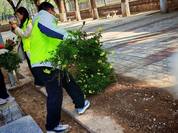 阳光明媚,和风习习,同学们手持清洁工具,迅速奔赴各自的“责任田”,霎时间呈现出一派热火朝天的劳动景象。同学们的劳动的热情高涨,广场旁,同学们俯下身子,耐心地拔除杂草,捡拾隐藏在灌木丛中的塑料袋、纸屑,校园的主干道上,清扫小组挥动扫帚,将堆积的落叶和尘土逐一清扫装袋。即便是平日里容易被忽略的排水沟盖板缝隙等细节之处,也在同学们的细心清理下恢复了洁净。经过几天的奋战,在同学们的共同努力下,校园环境焕然一新。